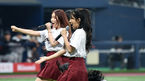 [OSEN=고척, 이동해 기자] 27일 서울 고척스카이돔에서 진행된 '2018 신한은행 MYCAR KBO리그' 넥센 히어로즈와 LG 트윈스의 경기, 5회말 후 크리닝타임 때 마이달링이 그라운드 응원을 펼치고 있다. 걸려 넘어진 멤버 단미. / eastsea@osen.