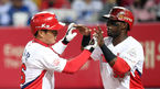 [OSEN=광주, 이대선 기자] 27일 오후 광주기아챔피언스필드에서 ‘2018 신한은행 MY CAR KBO리그’ KIA와 삼성의 경기가 열렸다.5회말 2사 1루에서 KIA 김주찬이 우중월 투런 홈런을 치고 버나디나의 축하를 받고 있다./sunday@osen.co.k