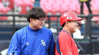 [OSEN=광주, 이대선 기자] 27일 오후 광주기아챔피언스필드에서 열릴 ‘2018 신한은행 MY CAR KBO리그’ KIA와 삼성의 경기에 앞서 KIA 김선빈이 코우조 코치의 지도를 받고 있다./sunday@osen.co.kr