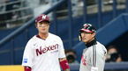 [OSEN=고척, 박재만 기자] 28일 오후 고척 스카이돔에서 '2018 신한은행 MY CAR KBO리그' 넥센 히어로즈와 LG 트윈스의 경기가 열렸다.5회초 넥선 두번째 투수 이영준이 이닝을 마친 뒤 더그아웃으로 향하며 김민성과 하이파이브를 하