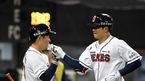 [OSEN=인천, 이동해 기자] 28일 오후 서울 인천 SK행복드림구장에서 '2018 신한은행 MY CAR KBO 리그' SK 와이번스와 kt 위즈의 경기가 열렸다.4회초 무사 1루 kt 박경수가 역전 투런홈런을 때린 후 최훈재 코치와 하이파이브 하고 있다. / e
