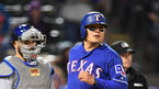 [OSEN=알링턴(미국) 곽영래 기자] 8일(한국시간) 미국 텍사스주 알링턴 글로브라이프 파크에서 '2018 메이저리그' 텍사스 레인저스와 토론토 블루제이스의 경기가 열렸다.6회초 1사 토론토 도널드슨이 구심의 스트라이크 판정에 항