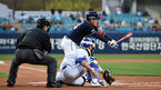 [OSEN=대구, 지형준 기자] 11일 오후 대구 삼성라이온즈파크에서 열린 '2018 신한은행 MYCAR KBO리그' 삼성 라이온즈와 두산 베어스의 경기. 1회말 무사 3루에서 삼성 김상수가 두산 유희관의 투구에 맞고 있다. /jpnews@osen.co.kr