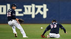 [OSEN=대구, 지형준 기자] 11일 오후 대구 삼성라이온즈파크에서 열린 '2018 신한은행 MYCAR KBO리그' 삼성 라이온즈와 두산 베어스의 경기. 1회말 1사 2,3루에서 두산 최주환이 삼성 배영섭의 2루땅볼 타구를 놓치고 있다. 안타로 기록.