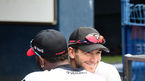 [OSEN=잠실, 민경훈 기자] 18일 오후 서울 잠실구장에서 '2018 신한은행 MY CAR KBO 리그' LG 트윈스와 한화 이글스의 경기가 열릴 예정인 가운데 양 팀 훈련시간에 한화 샘슨이LG 소사가 포옹을 하고 있다. / rumi@osen.co.kr