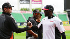 [OSEN=부산,박준형 기자]18일 오후 부산 사직구장에서 열리는 '2018 신한은행 MY CAR KBO리그' 롯데 자이언츠와 두산 베어스의 경기를 앞두고 김용희 경기감독관이 관계자들과 인사를 나누고 있다./ soul1014@osen.co.kr
