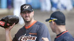 [OSEN=오키나와(일본), 조형래 기자] 한화 이글스 워윅 서폴드가 첫 실전 등판을 마쳤다.서폴드는 25일 일본 오키나와 온나손 아카마 구장에서 열린 한화 이글스와의 연습경기에 선발 등판해 3이닝 3피안타(1피홈런) 1볼넷 1탈삼진 2
