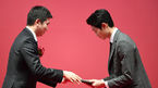 [OSEN=곽영래 기자] 25일 오후 서울 웨스틴조선호텔에서 열린 제 24회 코카콜라 체육대상에서 유승민 IOC선수위원이 신인상을 수상한 탁구 조대성에게 상을 건네고 있다. / youngrae@osen.co.kr