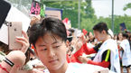 [OSEN=부산, 민경훈 기자] 파울루 벤투 감독이 이끄는 축구대표팀은 8일 오전 부산 강서체육공원에서 회복훈련을 했다. 팬들에게 내용을 공개하는 오픈 트레이닝으로 진행됐다.회복훈련을 마치고 열린 팬 사인회에서 손흥민이 축