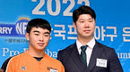 [OSEN=김성락 기자] 2일 오후 서울 강남구 호텔리베라에서 '2022 블루베리NFT 한국프로야구 은퇴선수의 날 시상식’이 열렸다.북일고 문현빈, 한화 김인환이 기념촬영을 하고 있다. 2022.12.02 /ksl0919@osen.co.kr