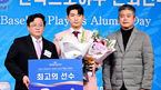 [OSEN=김성락 기자] 2일 오후 서울 강남구 호텔리베라에서 '2022 블루베리NFT 한국프로야구 은퇴선수의 날 시상식’이 열렸다.키움 이정후가 최고의 선수상을 수상한 뒤 기념촬영을 하고 있다. 2022.12.02 /ksl0919@osen.co.kr