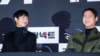 [OSEN=민경훈 기자] 5일 오후 서울 용산구 한강로 CGV 용산아이파크몰에서 디즈니+ 오리지널 '커넥트' 언론시사회 및 기자간담회가 열렸다.배우 고경표가 기자회견 중 쑥스러워하자 정해인이 미소짓고 있다. 2022.12.05 / rumi@osen.co.kr