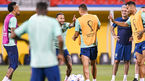 [OSEN=도하(카타르) 박준형 기자] 대한민국과 16강전을 하루 앞둔 브라질대표팀이 4일 오후 카타르 도하 알 아라비 축구클럽센터에서 공식훈련을 가졌다.공을 빼앗기며 술래된 네이마르가 동료들에게 어필하며 미소 짓고 있다. 202