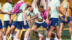 [OSEN=도하(카타르) 박준형 기자] 대한민국과 16강전을 하루 앞둔 브라질대표팀이 4일 오후 카타르 도하 알 아라비 축구클럽센터에서 공식훈련을 가졌다.브라질 파비뉴가 동료들 앞에서 춤을 춘뒤 미소 짓고 있다. 2022.12.04 / soul1014