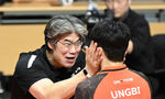 [OSEN=안산, 지형준 기자] 25일 오후 안산 상록수체육관에서 도드람 2024-2025 V리그 남자부 OK저축은행과 대한항공의 경기가 열렸다.이날 대한항공이 세트 스코어 3-2(25-19, 18-25, 25-27, 26-24, 15-9) 승리를 거뒀다. 3연승. 반면 OK저축은행