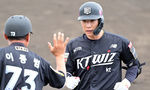 [OSEN=오키나와(일본), 조은정 기자] 26일 일본 오키나와 고친다구장에서 한화 이글스와 KT 위즈의 연습경기가 열렸다.한화는 22일 훈련을 시작으로 8차례 연습경기를 치른 뒤 내달 4일 귀국한다.5회초 2사 만루 KT 윤준혁이 2타점 적