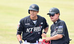 [OSEN=오키나와(일본), 조은정 기자] 26일 일본 오키나와 고친다구장에서 한화 이글스와 KT 위즈의 연습경기가 열렸다.한화는 22일 훈련을 시작으로 8차례 연습경기를 치른 뒤 내달 4일 귀국한다.KT 강백호가 출루에 성공한 장진혁
