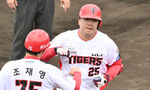 [OSEN=오키나와(일본), 조은정 기자]3일 일본 오키나와 킨 스타디움에서 KIA 타이거즈와 KT 위즈의 연습경기가 열렸다.이날 KIA는 양현종, KT는 소형준을 선발 투수로 내세웠다.2회말 1사 KIA 이우성이 동점 좌월 솔로 홈런을 날린 뒤