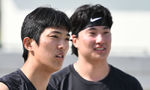 [OSEN=오키나와(일본), 조은정 기자]3일 일본 오키나와 킨 스타디움에서 KIA 타이거즈와 KT 위즈의 연습경기가 열린다.이날 KIA는 양현종, KT는 소형준이 선발 마운드에 오른다.KIA 이의리, 정해영이 KT 훈련을 지켜보고 있다. 2025.03.03