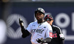 [OSEN=수원, 이대선 기자] 8일 오후 수원KT위즈파크에서 2025 신한 SOL뱅크 KBO 리그 시범경기 KT 위즈와 LG 트윈스의 경기가 열렸다.KT는 고영표, LG는 요니 치리노스를 선발 투수로 내세웠다.4회말 무사에서 KT 로하스가 좌전 2루타를 치