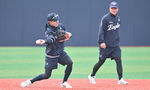 [OSEN=청주, 박준형 기자] 8일 청주야구장에서 ‘2025 신한 SOL BANK KBO리그’ 시범경기 한화 이글스와 두산 베어스의 경기가 진행된다.한화 엄상백과 두산 최승용이 선발 마운드에 오른다.경기 앞서 한화 심우준이 수비훈련을 하고