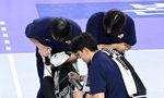 [OSEN=인천, 이대선 기자] 한국전력은 13일 오후 인천 계양체육관에서 열린 도드람 2024-2025 V-리그 6라운드 대한항공 원정 경기에서 3-2(20-25, 25-23, 21-25, 25-21, 23-21)로 이겼다.5세트 경기장에 쓰러진 한국전력 이원중이 치료를 받고 있