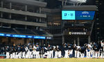 [OSEN=창원, 김성락 기자] 13일 오후 경남 창원NC파크에서 2025 신한 SOL뱅크 KBO 리그 시범경기 NC 다이노스와 KT 위즈의 경기가 열렸다.이날 경기는 KT 위즈가 NC 다이노스를 상대로 10-4로 승리했다. 경기 종료 후 NC 선수들이 과중에게
