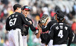 [OSEN=인천, 이대선 기자] LG는 15일 오후 인천 SSG랜더스필드에서 열린 2025 신한 SOL Bank KBO리그 SSG와 시범경기서 9-4로 이겼다.경기 종료 후 LG 치리노스가 SSG 선수들과 인사를 나누고 있다. 2025.03.15 /sunday@osen.co.kr