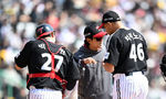 [OSEN=인천, 이대선 기자] 15일 오후 인천 SSG랜더스필드에서 2025 신한 SOL뱅크 KBO 리그 시범경기 SSG 랜더스와 LG 트윈스의 경기가 열렸다.SSG은 숀 앤더슨, LG는 요니 치리노스를 선발 투수로 내세웠다.2회초 1사 3루에서 LG 치리노스가