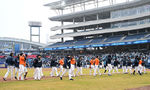 [OSEN=고척, 지형준 기자] 16일 서울 고척스카이돔에서 2025 신한 SOL 뱅크 KBO 리그 키움 히어로즈와 두산 베어스의 시범경기가 열렸다. 이날 키움과 두산은 2-2 무승부를 기록하며 승부를 가리자 못했다.경기를 마치고 두산 선수들이