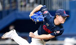[OSEN=고척, 최규한 기자] 18일 오후 서울 고척스카이돔에서 ‘2025 신한 SOL Bank KBO리그’ 시범경기 키움 히어로즈와 롯데 자이언츠의 경기가 열렸다.홈팀 키움은 정현우, 방문팀 롯데는 나균안을 선발투수로 내세웠다.6회말 1사 1