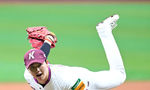 [OSEN=고척, 최규한 기자] 18일 오후 서울 고척스카이돔에서 ‘2025 신한 SOL Bank KBO리그’ 시범경기 키움 히어로즈와 롯데 자이언츠의 경기가 열렸다.홈팀 키움은 정현우, 방문팀 롯데는 나균안을 선발투수로 내세웠다.5회초 2사 1