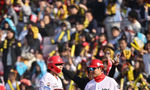 [OSEN=수원, 박준형 기자] 22일 수원KT위즈파크에서 ‘2025 신한 SOL BANK KBO리그’ KT 위즈와 한화 이글스의 개막경기가 진행됐다.이날 홈팀 KT는 헤이수스를, 어웨이팀 한화는 폰세를 선발투수로 내세웠다. 8회초 1사 한화 노시환이