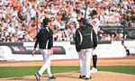 [OSEN=수원, 박준형 기자] 23일 오후 수원KT위즈파크에서 ‘2025 신한 SOL BANK KBO리그’ KT 위즈와 한화 이글스의 경기가 진행됐다.이날 경에서 홈팀 KT는 쿠에바스를, 어웨이팀 한화는 와이스를 선발투수로 내세웠다.7회초 실점 위기