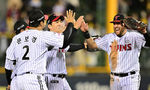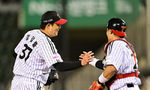 [OSEN=잠실, 김성락 기자] 프로야구 LG 트윈스가 한화 이글스를 꺾고 개막 3연승을 달렸다. LG는 25일 서울 잠실구장에서 열린 2025 KBO리그 한화 경기에서 5-0으로 승리했다.경기 종료 후 LG 염경엽 감독, 박해민이 하이파이브를 하고