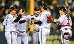 [OSEN=잠실, 김성락 기자] 프로야구 LG 트윈스가 한화 이글스를 꺾고 개막 3연승을 달렸다. LG는 25일 서울 잠실구장에서 열린 2025 KBO리그 한화 경기에서 5-0으로 승리했다.승리가 확정된 순간 LG 선수들이 기쁨을 나누고 있다. 2025.0