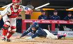 [OSEN=인천, 박준형 기자] 26일 오후 인천 SSG 랜더스 필드에서 ‘2025 신한 SOL BANK KBO리그’ SSG 랜더스와 롯데 자이언츠의 경기가 진행됐다.이날 SSG은 송영진을, 롯데는 김진욱을 선발투수로 내세웠다. 5회초 2사 1,2루 롯데 정보근이