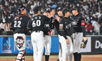 [OSEN=부산, 이석우 기자] 28일 부산 사직야구장에서 2025 신한 SOL 뱅크 KBO 리그 롯데 자이언츠와 KT 위즈의 경기가 열렸다. 홈팀 롯데는 반즈가 선발로 출전하고, 방문팀 KT는 헤이수스가 선발로 출전했다.KT 위즈 선수들이 롯데 자이