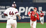 [OSEN=고척, 이대선 기자] 28일 오후 서울 고척스카이돔에서 2025 신한 SOL Bank KBO리그 키움 히어로즈와 SSG 랜더스의 경기가 열렸다.키움은 로젠버그, SSG은 앤더슨을 선발 투수로 내세웠다.5회말 무사 1,2루에서 키움 이주형의 땅볼 때