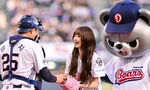 [OSEN=고척, 이대선 기자] 28일 오후 서울 고척스카이돔에서 2025 신한 SOL Bank KBO리그 키움 히어로즈와 SSG 랜더스의 경기가 열렸다.이날 키움이 9-3으로 SSG에 승리했다.경기에 앞서 배우 박정화가 시구를 하고 있다. 2025.03.28 /sunday@ose