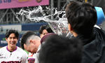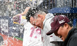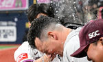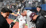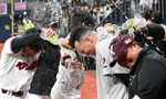 [OSEN=고척, 이대선 기자] 28일 오후 서울 고척스카이돔에서 2025 신한 SOL Bank KBO리그 키움 히어로즈와 SSG 랜더스의 경기가 열렸다.이날 키움이 9-3으로 SSG에 승리했다.경기 종료 후 첫 승을 거둔 키움 로젠버그가 동료들에게 축하 물