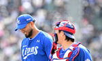 [OSEN=잠실, 지형준 기자] 30일 오후 서울 잠실야구장에서 2025 신한 SOL Bank KBO리그 두산 베어스와 삼성 라이온즈의 경기가 열렸다.이날 두산은 최원준, 삼성은 레예스를 선발로 내세웠다.5회말 수비를 마친 삼성 레예스가 강민호와