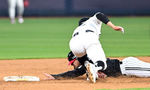 [OSEN=잠실, 민경훈 기자] 2일 오후 서울 잠실야구장에서 2025 신한 SOL Bank KBO리그 두산 베어스와 키움 히어로즈의 경기가 열렸다.이날 두산은 최승용, 키움은 윤현을 선발로 내세웠다.4회말 2사 주자 2,3루 두산 강승호의 유격수 앞
