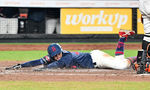 [OSEN=수원, 최규한 기자] 3일 오후 경기도 수원 KT위즈파크에서 ‘2025 신한 SOL Bank KBO리그’ KT 위즈와 LG 트윈스의 경기가 열렸다.홈팀 KT는 헤이수스, 방문팀 LG는 임찬규를 선발로 내세웠다.8회초 무사 2루 상황 LG 박동원의 번트 때