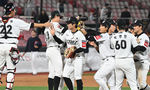 [OSEN=수원, 조은정 기자]프로야구 KT 위즈가 NC 다이노스를 꺾고 3연패에서 탈출했다. KT는 8일 수원 KT위즈파크에서 열린 2025 KBO리그 NC와 경기에서 3-2로 승리했다.KT가 승리를 기뻐하고 있다. 2025.04.08 /cej@osen.co.kr