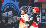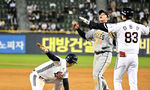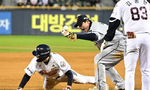 [OSEN=지형준 기자] 8일 오후 서울 잠실야구장에서 2025 신한 SOL Bank KBO리그 두산 베어스와 한화 이글스의 경기가 열렸다.이날 두산은 최승용, 한화는 문동주를 선발로 내세웠다.8회말 무사 2루에서 두산 박지훈이 양석환의 3루땅볼