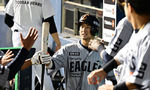 [OSEN=지형준 기자] 8일 오후 서울 잠실야구장에서 2025 신한 SOL Bank KBO리그 두산 베어스와 한화 이글스의 경기가 열렸다.이날 두산은 최승용, 한화는 문동주를 선발로 내세웠다.8회초 무사 1,3루에서 한화 최재훈이 역전 좌익수 희