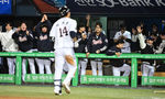 [OSEN=지형준 기자] 8일 오후 서울 잠실야구장에서 2025 신한 SOL Bank KBO리그 두산 베어스와 한화 이글스의 경기가 열렸다.이날 두산은 최승용, 한화는 문동주를 선발로 내세웠다.4회말 2사 2루에서 두산 박계범이 1타점 중전 적시타