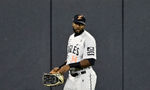 [OSEN=지형준 기자] 8일 오후 서울 잠실야구장에서 2025 신한 SOL Bank KBO리그 두산 베어스와 한화 이글스의 경기가 열렸다.이날 두산은 최승용, 한화는 문동주를 선발로 내세웠다.4회말 2사 2루에서 한화 플로리얼이 두산 박계범의 1