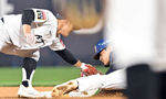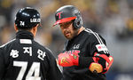 [OSEN=지형준 기자] 8일 오후 서울 잠실야구장에서 2025 신한 SOL Bank KBO리그 두산 베어스와 한화 이글스의 경기가 열렸다.이날 두산은 최승용, 한화는 문동주를 선발로 내세웠다.4회말 2사 2루에서 한화 플로리얼이 두산 박계범의 1